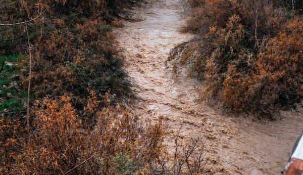 El agua baja con turbulencia y completamente marrón, esta mañana, por el arrastre de tierra en las escorrentías