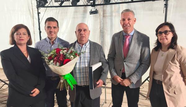 El pregonero de las fiestas de la Virgen del Pilar en Cortijos Nuevos, Tomás Gallego, flanqueado entre otros por el alcalde de Segura de la Sierra, José Manuel Martínez; público presente en la carpa de la plaza Sebastián Palomares, y momento final del pregón, con todos los presentes puestos en pie. El alcalde de Segura de la Sierra, José Manuel Martínez Robles, presentó un acto muy emocionante para todos los asistentes. “Don Tomás”, como muchos aún le conocen, subió al atril con rostro emocionado para dirigirse a sus antiguos alumnos y vecinos. Comenzó su discurso recordando y “agradeciendo los 35 años de su carrera profesional que pasó en el colegio de Cortijos Nuevos”. Una tierra que le acogió cuando llegó desde Villanueva de la Reina. Luego reflexionó sobre los cambios que vivió la pedanía desde que llegó a ella en 1974, como el crecimiento de la aldea, llegaron servicios básicos como el consultorio, la gasolinera o el supermercado. O la transformación del colegio de un edificio de dos aulas a un centro comarcal con pabellón, comedor y transporte escolar para los alumnos de aldeas cercanas. También agradeció a las asociaciones y grupos que cad mes de octubre dan brillo a las celebraciones de la Virgen del Pilar. Sin embargo, no todo es cambio y “Don Tomás”, durante el cierre de su pregón, resaltó las muchas cosas que continúan siendo igual:. “El 12 de octubre fue, y sigue siendo, una llamada a nuestros corazones para que quienes nos encontramos lejos de nuestra sierra de Segura hagamos todo lo posible por acudir a acompañarla”. Con esto finalizó el pregón, con la defensa de las tradiciones, de las costumbres y con un mensaje lleno de fuerza y emoción: “¡Viva la Virgen del Pilar! ¡Viva Cortijos Nuevos! y ¡Viva la Sierra de Segura!”.