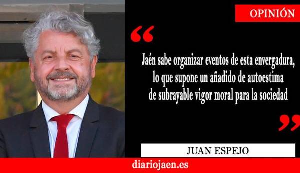Jornada redonda y de orgullo jaenero que merece un reconocimiento explícito no solamente a los organizadores, que por supuesto, también, pero hoy y aquí quiero hacer especial hincapié en todas y cada una de las cofradías que se han desplazado de nuestra geografía provincial, comarca a comarca, por el sentimiento y el rigor, el orden y la entrega de sus cortejos a la causa de la esperanza. Si esos 1.000 paisanos peregrinos han puesto toda su alma para que la Magna saliese bien no podía salir ni siquiera regular. Es ahí desde donde se ha irradiado el éxito de la celebración y el público asistente, también entregado al magno acontecimiento, ha llevado en volandas a esos costaleros y costaleras cuando portaban en recogimiento esas imágenes preñadas de fervor y devoción en cada uno de sus pueblos. Además, esta crónica de la semana número 1.695 (nació la sección en noviembre de 1992) debe subrayar algo añadido y también fundamento de lo vivido, Jaén sabe organizar eventos de esta envergadura, lo que supone un añadido de autoestima de subrayable vigor moral para la sociedad. No estamos acostumbrados a vivirlos en primera persona, por lo que más que satisfechos de un éxito compartido.