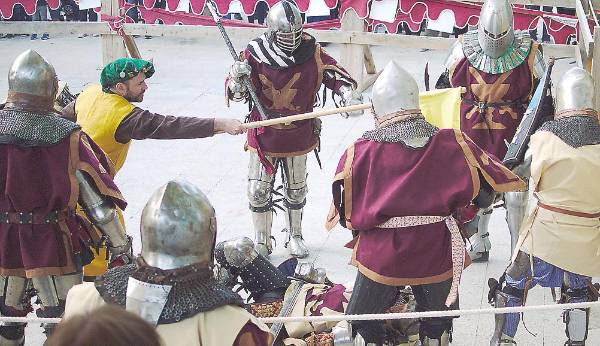 S. García/ El equipo Urna Regnum, dentro del programa de la Diputación de Jaén “Vive Castillos y Batallas”, ofreció este sábado, en el parque municipal, una espectacular exhibición de combate bajomedieval en la que no escatimaron en golpes y realismo para mostrar a los espectadores cómo se luchaba en los siglos XIV y XV. Una actividad que contó con un amplio público asistente.