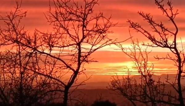 Amanecer anaranjado y rojizo sobre las Allanadas, en Huelma