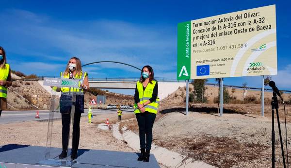 La consejera de Fomento, Infraestructuras y Ordenación del Territorio, Marifrán Carazo, ha visitado hoy, junto a la alcaldesa de Baeza, Dolores Marín, y la delegada del Gobierno de la Junta en Jaén, Maribel Lozano, el inicio de las obras de la conexión de la Autovía del Olivar (A-316) con la Autovía Bailén-Albacete (A-32) y la mejora del enlace oeste de Baeza, desbloqueando así un proyecto enquistado desde hace diez años. El Gobierno andaluz ha solventado este enredo de contratos y ha adjudicado la obra por 1.087.431 euros a la empresa Asfaltos Jaén S.L.U. Para la consejera, es “fundamental acabar con este tramo jiennense de la Autovía del Olivar para, entre otras cosas, resolver la comunicación de la A-316 con tráfico de origen y destino en el núcleo urbano de Baeza”.