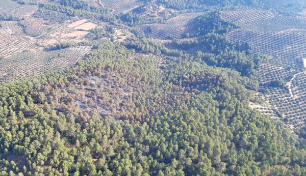 Así se ve el incendio de Benatae, ya estabilizado, desde un helicóptero