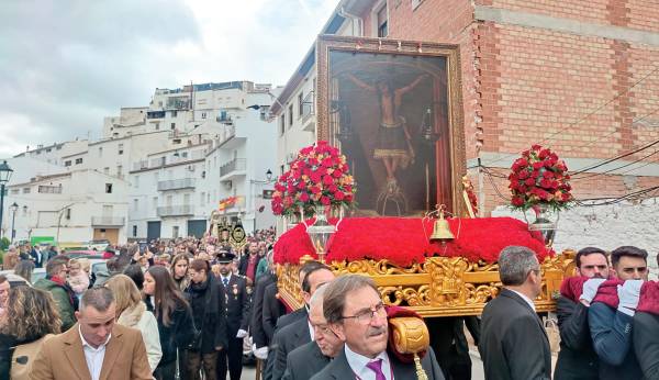 Las calles de Cambil vivieron el domingo una auténtica fiesta religiosa en honor al Cristo del Mármol. El municipio de Sierra Mágina se puso sus mejores galas para rendir homenaje a su patrón, que recorrió las calles en un ambiente inmejorable. Una procesión diferente, ya que, las obras en Calle Real obligaron a realizar cambios en el itinerario procesional que impidieron su traslado a la ermita como es habitual. Sin embargo, esto permitió unos momentos muy especiales cuando la imagen recorrió calles por las que no suele pasar.