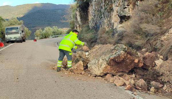 El tramo afectado está señalizado y mañana se procederá a realizar los trabajos de retirada de piedras y limpieza de la vía
