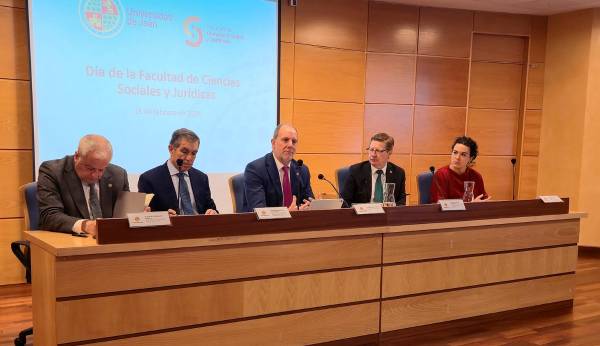 Nicolás Ruiz ha estado acompañado en la mesa por el decano de la Facultad de Ciencias Sociales y Jurídicas, Félix Grande Torraleja, el presidente del Tribunal Superior de Justicia de Andalucía, Ceuta y Melilla (TSJA), Lorenzo del Río, el presidente de la Audiencia Provincial de Jaén, Rafael Morales Ortega, y la vicedecana de la Facultad de Ciencias Sociales y Jurídicas, María Gutiérrez Salcedo.