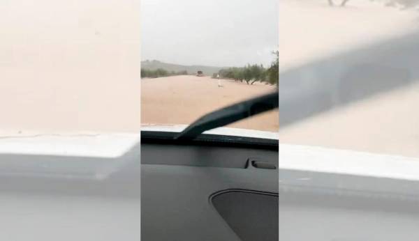 La carretera Jaén-Fuerte del Rey se ha visto perjudicada por el agua caía durante las últimas horas, quedando inundada. Los vehículos continúan circulando con precaución.