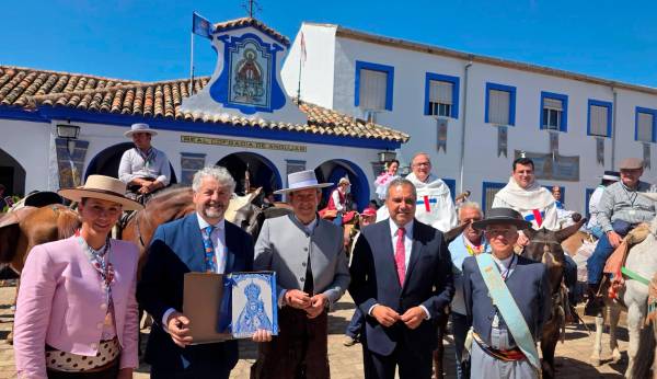 Fue el último acto de la Romería 2026 en el Cerro de la Cabeza y se hacía en la Cofradía Matriz de Andújar, tras la misa de Acción de Gracias y antes de que la caballería al completo partiera de vuelta hacia la ciudad. Se reconocía en ese momento la labor de Diario JAÉN por la devoción mariana, con toda su junta de gobierno presente, más los hermanos mayores, José María Alcántara y Teresa Flores. El presidente de la cofradía, Manuel José Gómez Martinez se pronunciaba así: “Desde 1941, Diario JAÉN ha estado siempre al servicio de la devoción mariana y con todos los pueblos de la provincia”, para animar después al presidente de DIARIO JAÉN S.A., Eleuterio Muñoz, y al director del periódico, Juan Espejo, “a que sigáis difundiendo la cultura, la devoción y la tradición de nuestros pueblos y por eso os hago entrega de un mosaico con la imagen de la Virgen de la Cabeza, que nos va a dar protección a todos”. Al acto se sumaría el alcalde de Andújar, Francisco Carmona y estaría también presente el rector del Santuario, Luis Miguel Alaminos. Eleuterio Muñoz dio las gracias en nombre de todos los trabajadores del periódico en su 85 aniversario y puntualizó: “Contad con ello, seguid contando con nosotros para todo lo que necesitéis, lo hacemos con el convencimiento expreso de servicio a Jaén y a sus gentes”, tras entregarle a Manuel José Gómez un vendedor de Prensa, reproducción de la estatua de la primera sede de Diario JAÉN en el Palacio de los Condes de Corbull.