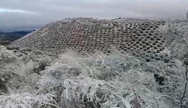 A las ocho de la mañana y con apenas un grado de temperatura, así amanecía el olivar de montaña en Huelma. La escena, grabada en vídeo en el paraje del Collado de la Torre, a unos 1.200 metros de altitud, muestra un paisaje marcado por el frío de primeras horas del día y la tranquilidad que envuelve a esta zona de la Sierra Mágina. El amanecer deja imágenes de gran belleza en este enclave, donde los olivares se extienden entre las laderas de la sierra y el aire frío recuerda que el invierno todavía se deja notar en las zonas más altas del término municipal. Un instante de calma y naturaleza que refleja la singularidad del olivar de montaña jiennense.