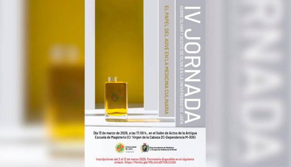 El Consejo Social de la Universidad de Jaén y la Real Academia de Medicina y Cirugía Oriental, Ceuta y Melilla organizan este próximo viernes 13 de marzo la IV Jornada sobre Olivar y Aceite de Oliva en la Universidad de Jaén, titulada “El papel del AOVE en la medicina culinaria”. Tendrá lugar a las 17 horas, en el Salón de Actos de la Antigua Escuela de Magisterio. La finalidad de esta jornada reside en promover el conocimiento y la valoración del aceite de oliva virgen extra (AOVE) en la salud, la gastronomía y la medicina culinaria, mediante la divulgación científica y el intercambio interdisciplinar entre profesionales del sector. En el transcurso de la jornada participará el presidente de la Real Academia de Medicina y Cirugía de Andalucía Oriental, Ceuta y Melilla, Armando Zuluaga Gómez, así como expertos de primer nivel que compartirán sus conocimientos y perspectivas sobre los innumerables beneficios del aceite de oliva como pieza clave de una alimentación equilibrada y protectora de la salud.