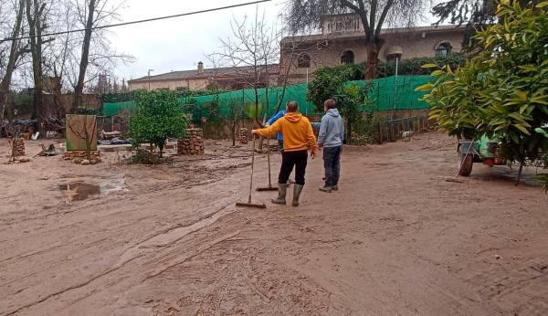 Los vecinos siguen, un día más, con las tareas de limpieza del barro en viviendas, calles y parques