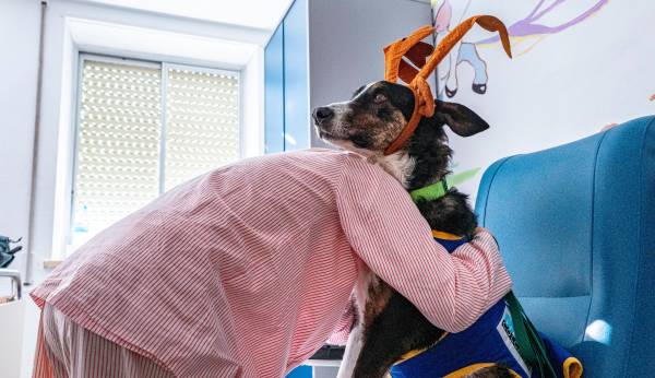 Esta nueva sesión se enmarca en la estrategia de humanización de la asistencia sanitaria del centro y da continuidad al programa de intervenciones asistidas con perros, puesto en marcha recientemente. Durante la visita, Rufino y Garbanzo interactuaron con los niños hospitalizados en las plantas de Pediatría, Unidad de Cuidados Críticos de Pediatría y Oncopediatría, ayudando a reducir la ansiedad hospitalaria y a mejorar su estado emocional, especialmente en unas fechas tan significativas como la Navidad.