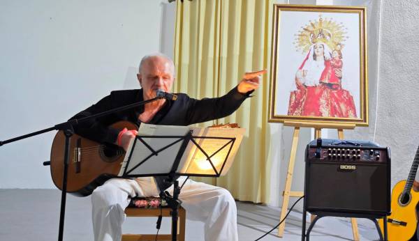 Con su inseparable guitarra, Segura comenzó mostrando sus intenciones desde bien temprano, pues no fue el suyo un pregón más ni uno cualquiera, porque intercaló en “Cuéntame un cuento andaluz” —título de su pregón musical—, la poesía, la música y la relación con su pueblo y su tiempo en él. “Es una especie de concierto hablado, poético, algo diferente a lo que es un pregón”, confesó a Diario JAÉN minutos antes de su puesta en escena. Con los acordes resonando por el improvisado auditorio, intercaló letras de su puño como “Entre olivos”, “Cantautor” o “El Árbol”. Especialmente sentimental este último tema propio, pues habla de la relación con su madre y lo que supone para él: “No es por nada, pero a veces, hubiera echado raíces junto a las de mi árbol”, resonó a sentencia con regusto a nostalgia, pues el árbol al que se refiere dimana en sus recuerdos de infancia, cuando su madre decidió plantar uno por su alumbramiento.