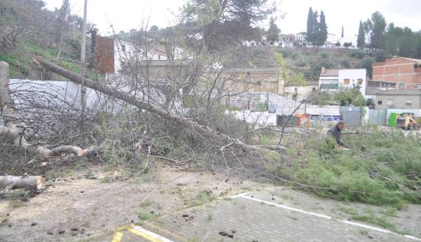 Al igual que en la avenida del Río. De hecho, uno de los pinos de grandes dimensiones cayó como consecuencia de las fuertes rachas de viento. Debido a la acción del agua, la tierra estaba húmeda y varios de esos pinos estaban vencidos. Por ello, finalmente se apostó por cortar la calle y segar esos pinos antes de que la acción del viento los empujara de nuevo causando un peligro mayor.