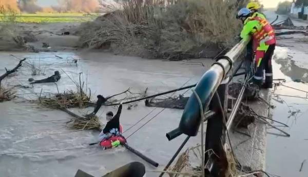 Efectivos del cuerpo de Bomberos de Jaén capital han atendido a primera hora de esta mañana el rescate del ocupante de un vehículo que ha caído al río desde el puente de la A-6000 que une Villargordo con Mengíbar. Los bomberos han acudido a la zona tras la llamada del 112 y han comprobado que uno de los dos ocupantes del turismo había podido salir por sus propios medios del mismo y del cauce, mientras que el otro permanecía sobre una parte de la estructura del puente en mitad de la corriente a la espera de ser rescatado y presentaba un cuadro de hipotermia. Los bomberos han colocado un sistema de cuerdas desde el puente hasta la orilla. Un bombero ha sido el responsable de nadar hacia el centro del cauce, donde se encontraba el joven y regresar con él a la orilla, donde ha sido atendido.
