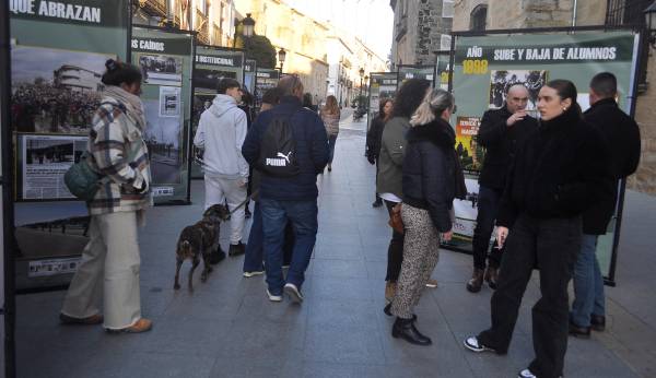 Fotografías de todas las etapas en las que se pueden observar sus inicios, las sucesivas ampliaciones de la Academia, pero también las juras de bandera de las diferentes promociones y otras estampas para el recuerdo hasta el 2024, año en el que se conmemoró el 40 aniversario de esta institución formativa de la Guardia Civil y a la que asistió el rey Felipe VI en la jura de la 129 promoción de alumnos. Quienes cruzan la calle San Pablo ven sus propios recuerdos, como es el caso del malagueño Juan Antonio Cuesta, que contempló con cariño el panel de su promoción del año 2006: “Es una muy buena iniciativa por parte de Diario JAÉN”. Clara Viedma también observó con detenimiento esta exposición: “Desde sus inicios la he vivido y, además, me gusta muchísimo la Guardia Civil”.