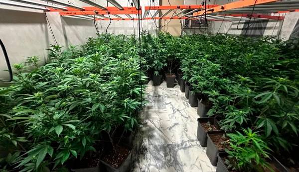 Durante la revisión de la habitación de la vivienda afectada, situada encima del establecimiento que ha sufrido los daños, los agentes localizaron por casualidad una plantación de marihuana así como una excavación bajo el suelo que podría haber provocado los daños detectados en el techo del establecimiento inferior.