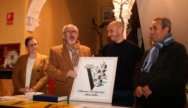 JUAN JOSÉ FERNÁNDEZ/ El patio de columnas del Ayuntamiento de Villanueva del Arzobispo acogió la presentación del logo conmemorativo del centenario del municipio. En el acto participaron el alcalde, Gabriel Fajardo; la edil de cultura, Sonia Serrano; el cronista de la villa, Manuel López, y el autor de la obra, Diego Jiménez.