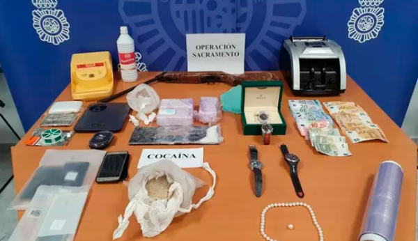 Durante la operación bautizada como Sacramento, los agentes se hicieron, además de con la droga, con un vehículo, una máquina contadora de dinero, utensilios para la elaboración de sustancias estupefacientes, varios relojes, uno de ellos valorado en 60.000 euros y un collar de perlas cuyo valor asciende a 6.000 euros.